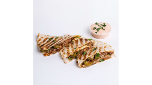 Tortilla, wołowina szarpana, sos serowy, sos BBQ, ser gouda, cebula czerwona, jalapeño