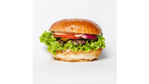 180 g świeżo mielonej wołowiny, bułka brioche z sezamem, sos classic, pomidor, cebula czerwona, ogórek kiszony, sałata