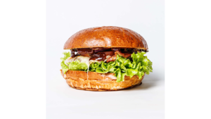 180 g świeżo mielonej wołowiny, bekon, bułka brioche z sezamem, ser gouda, sos classic, sos BBQ, pomidor, cebula czerwona, ogórek kiszony, sałata