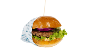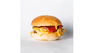 120 gramów świeżo mielonej wołowiny, bułka brioche z sezamem, sos mango mayo, ogórek kiszony, czerwona cebula