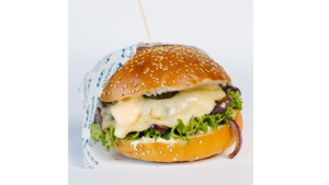 180 gramów świeżo mielonej wołowiny, bułka brioche z sezamem, dip serowy, potrójny ser gouda, cebula karmelizowana, ogórek kiszony, majonez